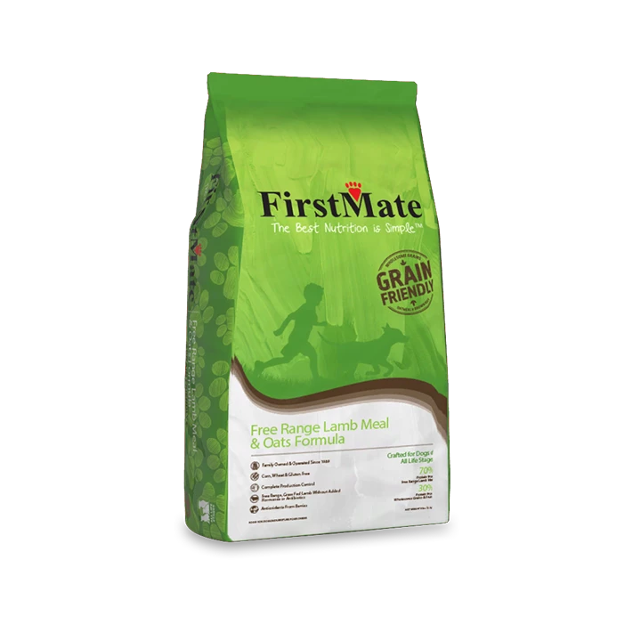 Our Free Range Lamb & Oats Formula uses Grass Fed Lamb from Australia without added hormones or antibiotics as the single protein and only two wholesome grains. The Grain Friendly category is free of corn, wheat, soy, potato and peas making it optimum for daily feeding or sensitivities. The chicken fat used in FirstMate Pet Foods is processed free of protein, eliminating the risk of allergies derived from chicken.