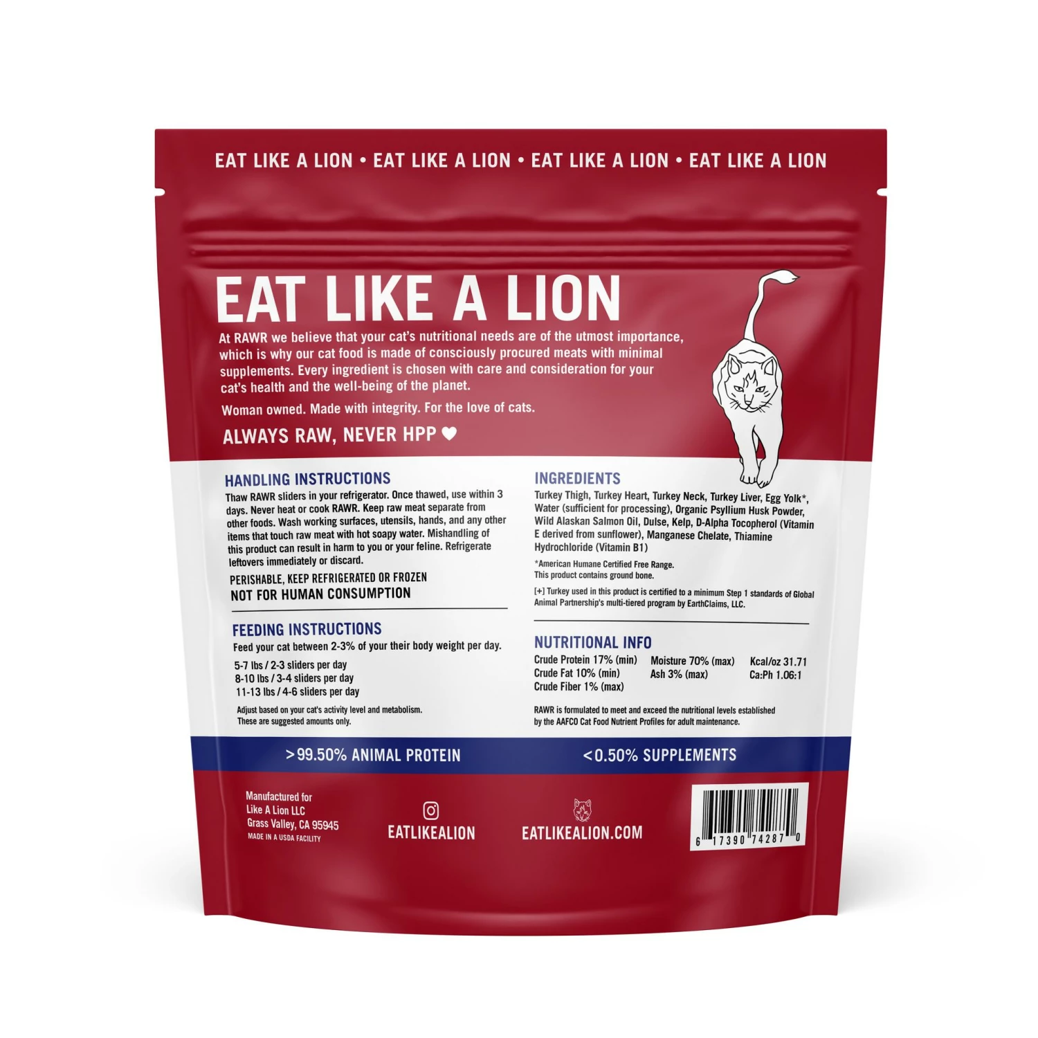 Be the first to review “RAWR Turkey Eats Sliders Raw Frozen Cat Food” Cancel reply