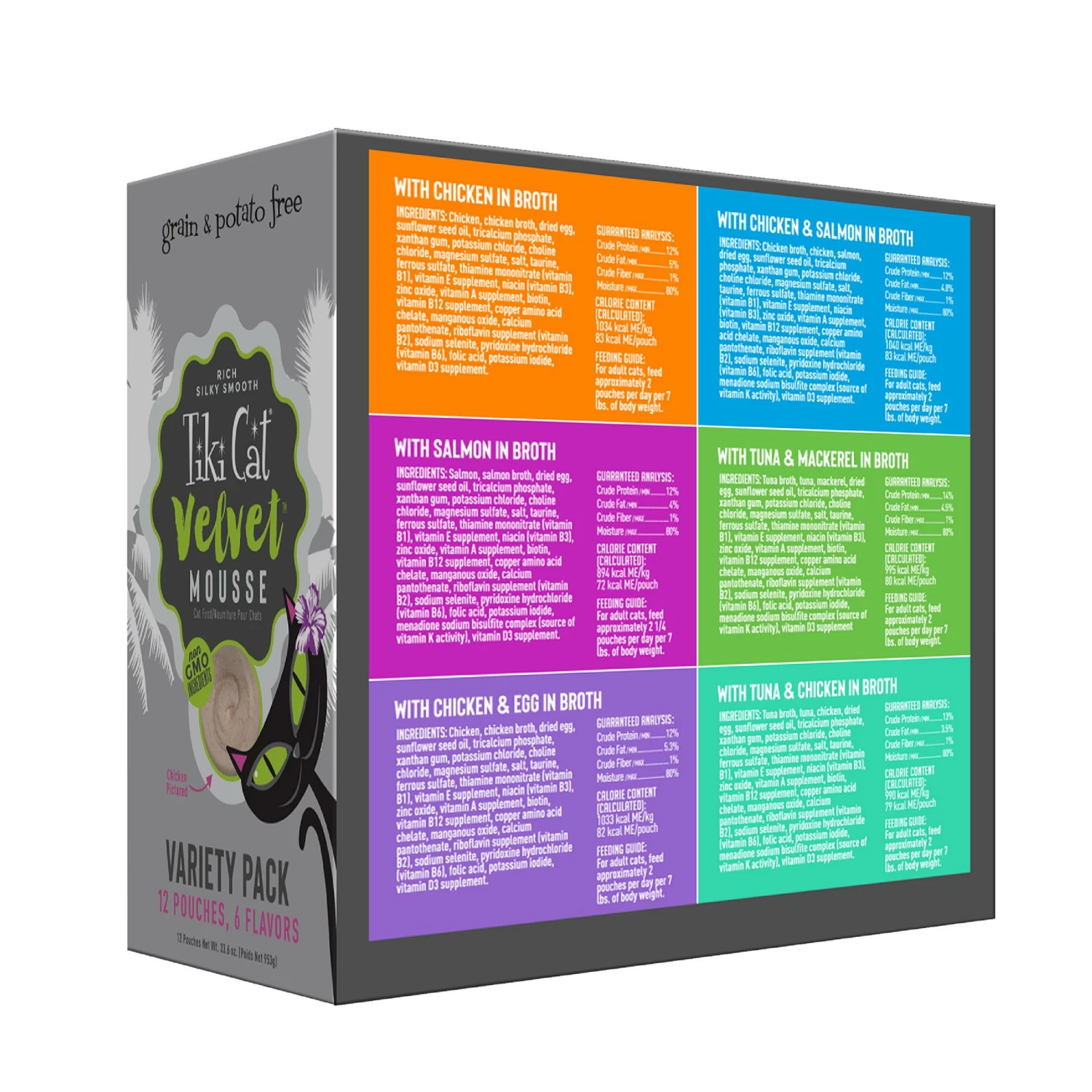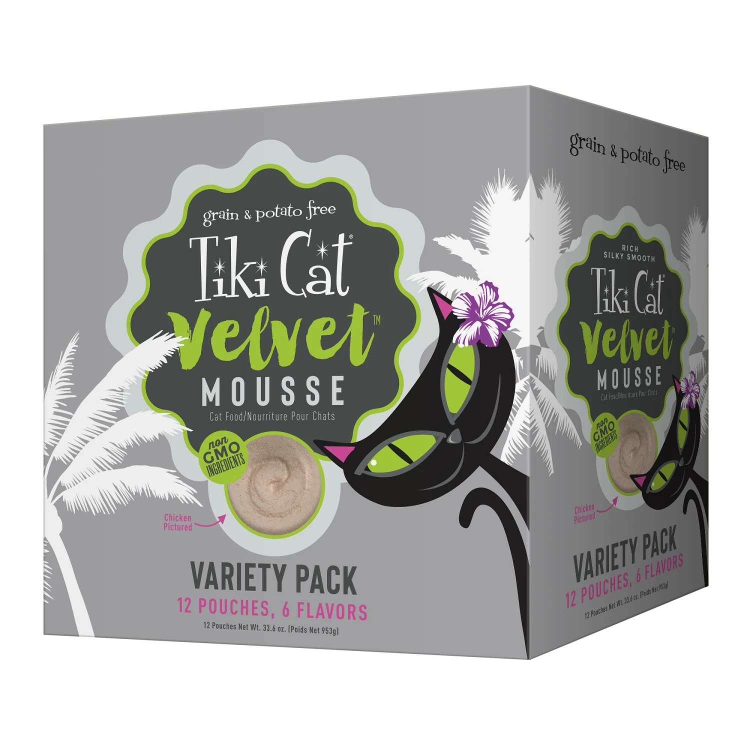 Tiki Cat® Velvet™ Wet Cat Food features silky-smooth mouse blends of fish or chicken for the most finicky felines.